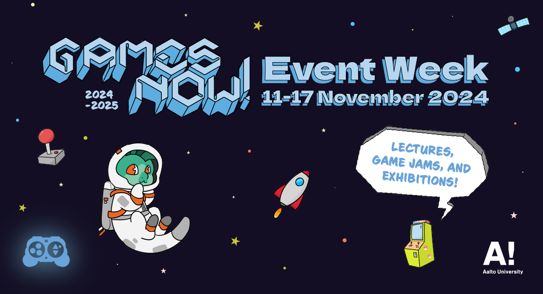 The 2024-25 season of GN! features two GN! Event Weeks with talks, exhibition and a game jam – one in autumn and one in spring. The season will be crowned by GN! Exhibition Weeks in Spring 2025 highlighting the games made in our jams!
